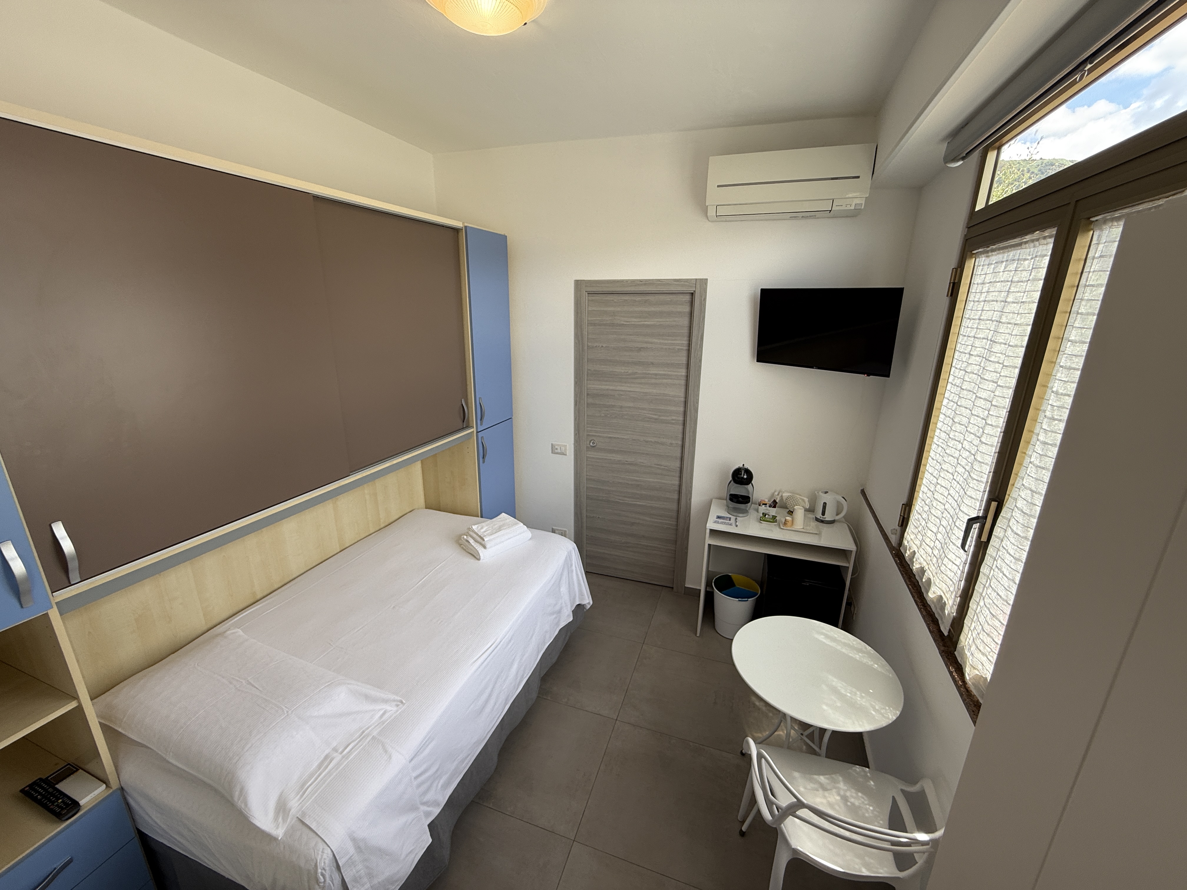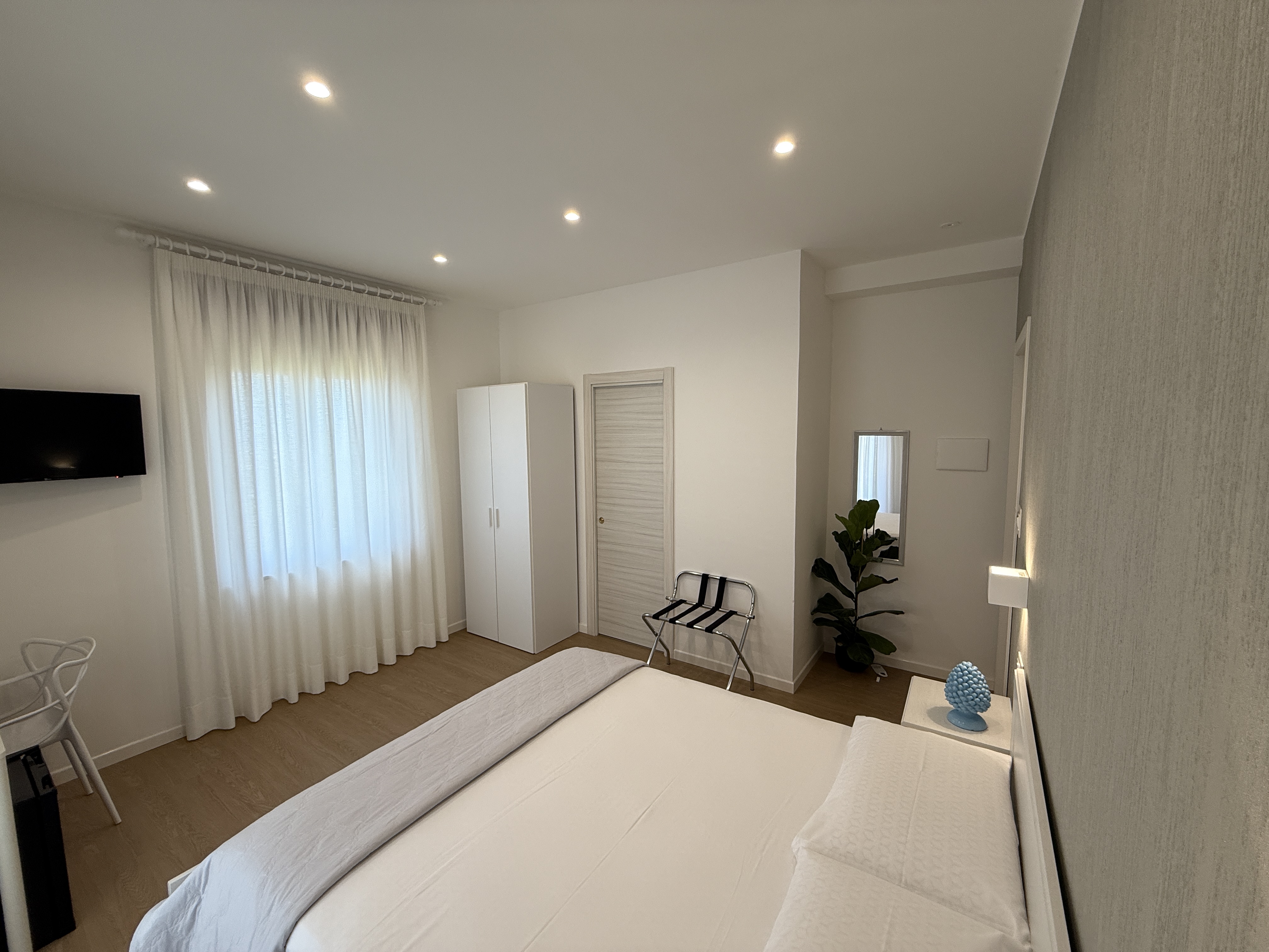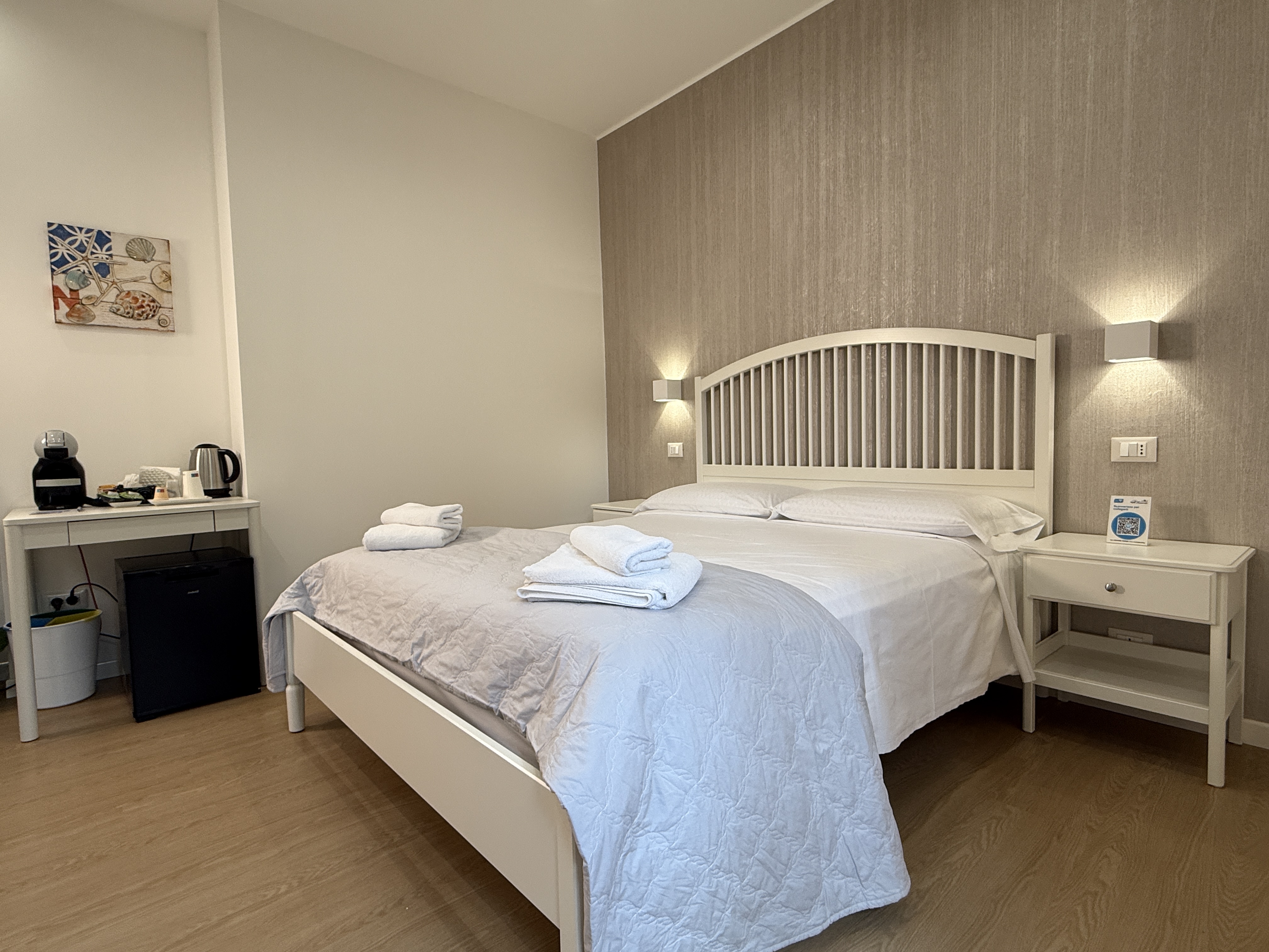 Le nostre camere sono dotate di balconi con vista mare, bagno privato, climatizzatore, Wi-Fi, Tv, Phon e macchinetta del caffè per garantirti il massimo comfort. Disponiamo inoltre di un parcheggio libero. Ogni mattina ti coccoliamo con una colazione servita direttamente in camera per iniziare la giornata con il sorriso.